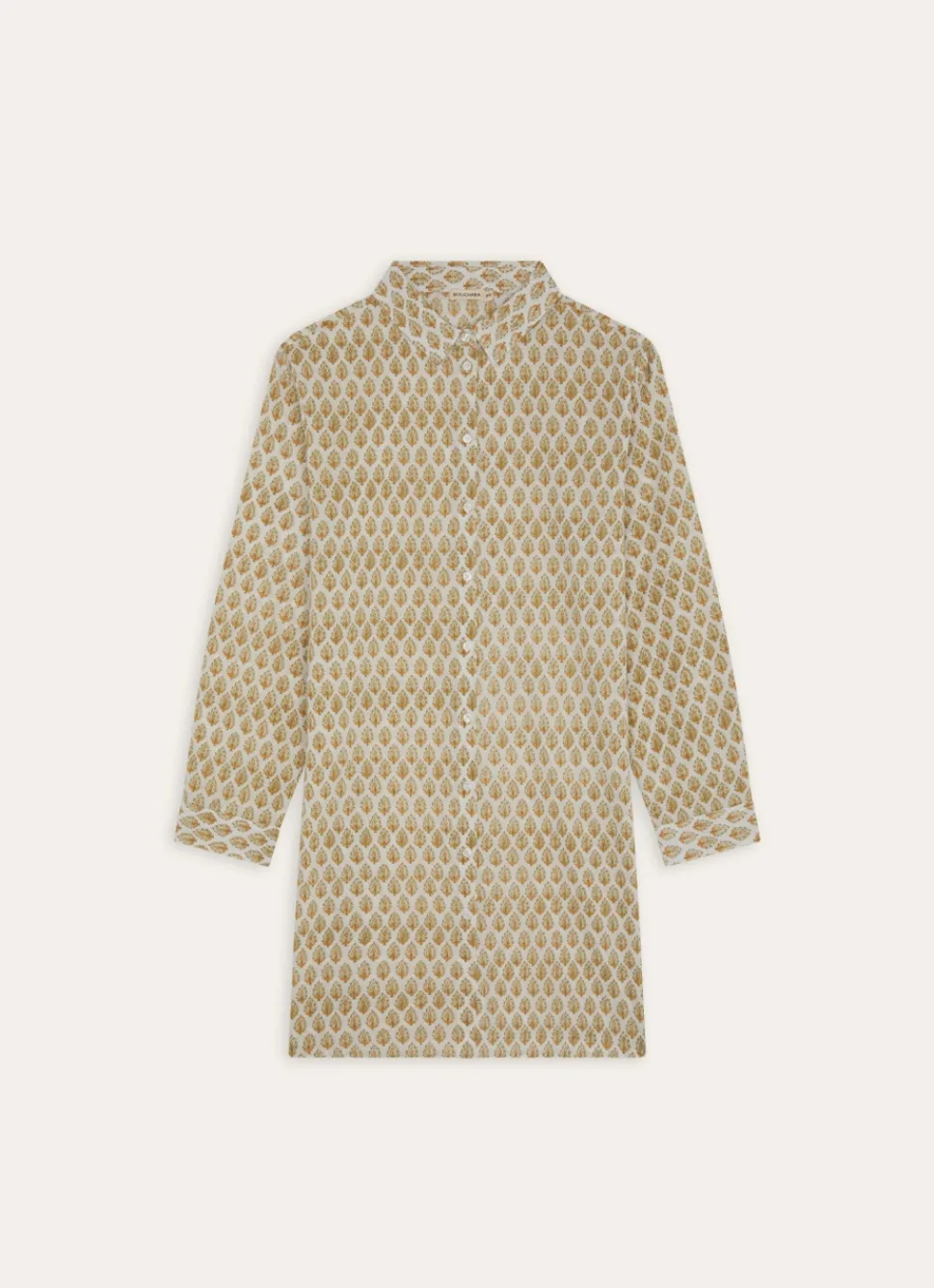 Optez pour le confort et l’élégance avec cette chemise de nuit à manches longues en voile de coton imprimé. Son imprimé AOP Vert fond écru apporte une touche de douceur et de légèreté à vos nuits, tout en garantissant une coupe agréable pour un sommeil réparateur. Fermeture : Boutonnée. Taille : Disponible de la taille 34/36 à la taille 50/52.