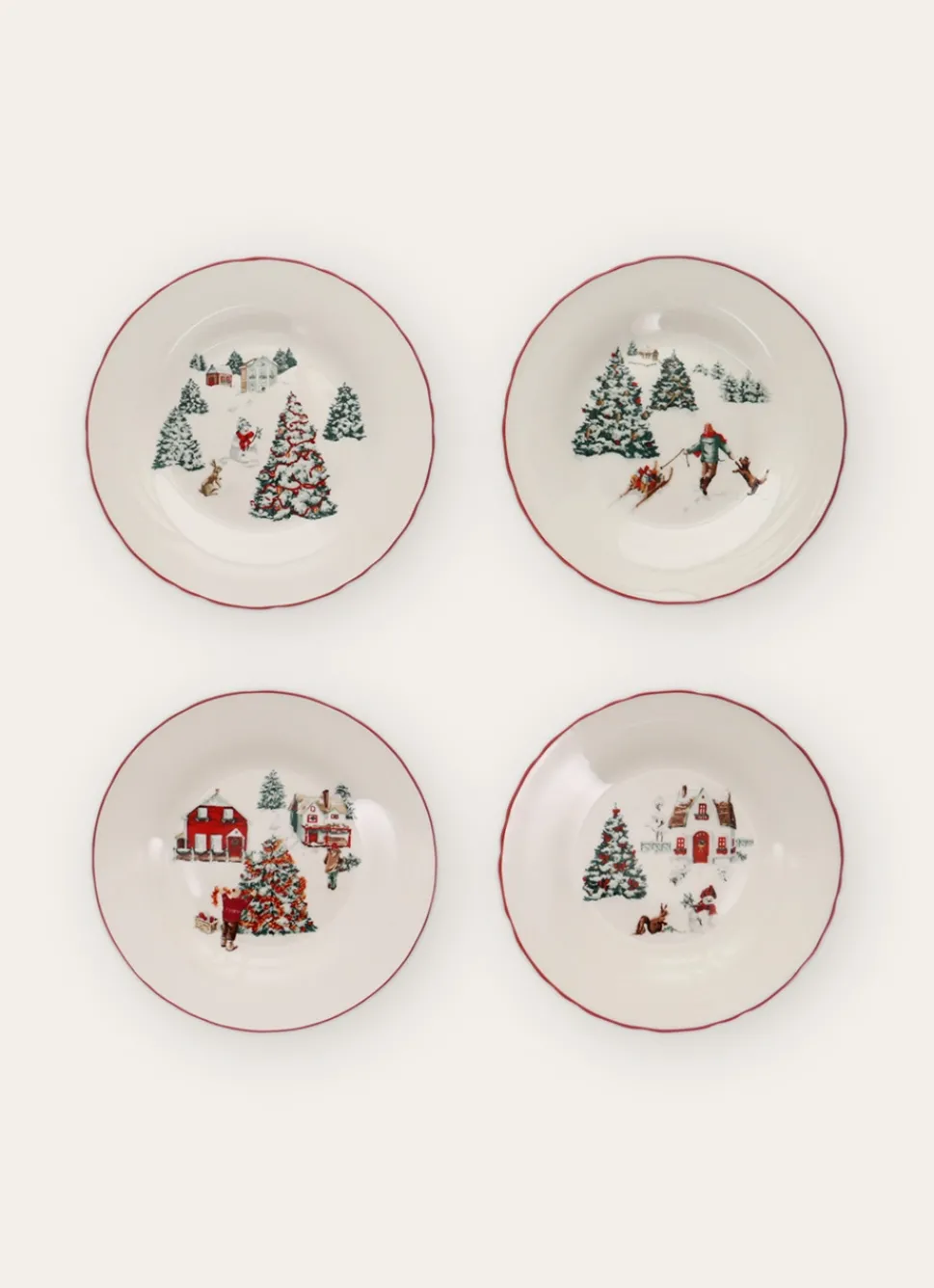 Sale Bouchara COFFRET 4 ASSIETTES À DESSERT EN PORCELAINE WINTER ROUGE