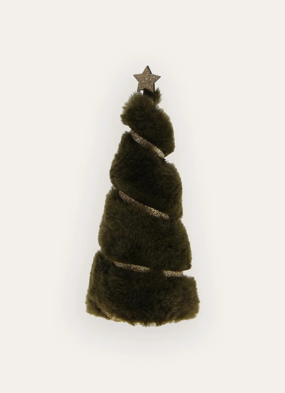 Sale Bouchara PETIT SAPIN DÉCORATIF EFFET FOURRURE AVEC RUBAN VERT FONCE