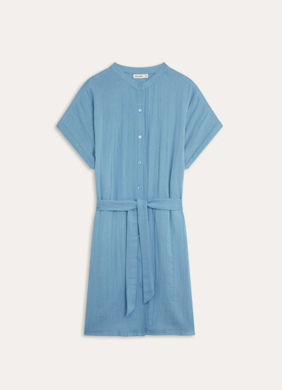 Sale Bouchara TUNIQUE MANCHES COURTES EN GAZE DE COTON BLEU