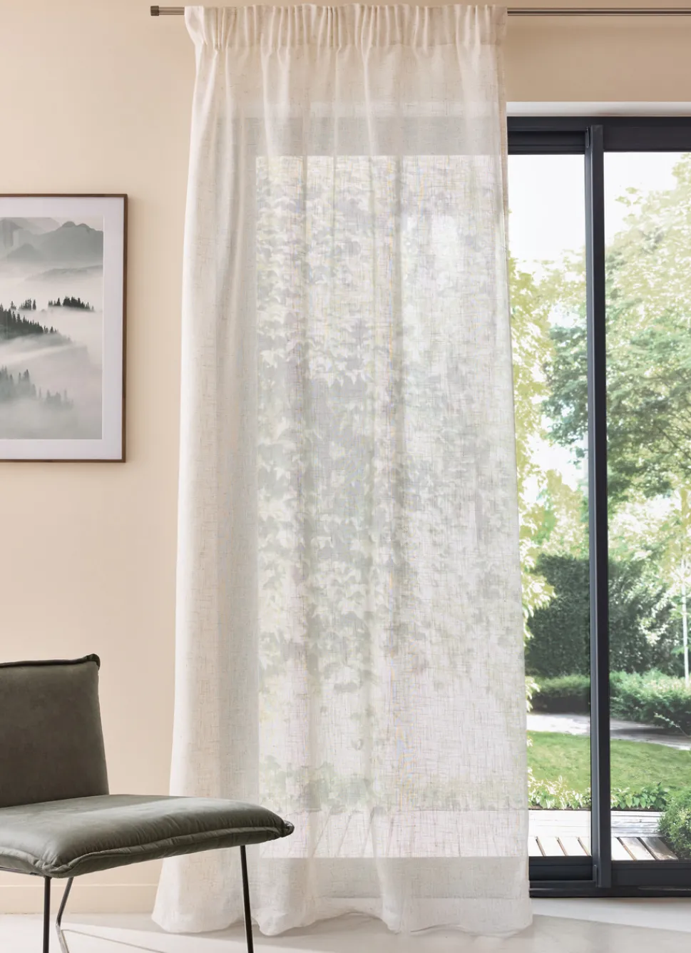 Ce voilage mouchété, avec ses fils irréguliers lui donnant un côté rustique, est à la fois élégant et naturel. Assez lourd grâce à sa composition contenant du lin, il est également tamisant, apportant une atmosphère cosy tout en protégeant des regards extérieurs. Son tissu de haute qualité, avec un poids de 200 g/m², garantit un beau tombé et une excellente durabilité. Certifié Oeko-Tex, ce produit respecte les normes environnementales et de santé. Vendu à l’unité. Dimensions (cm) : 140 x 260. Finition : Bande ruflette (diamètre 40 mm).